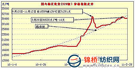 中國棉花價格指數(shù)行情(11-3-28)