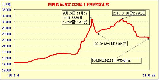 中國棉花價格指數(shù)行情(11-6-29)