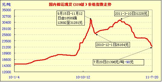 進入7月份來,在期棉和魏橋連續(xù)下調(diào)采購價打壓下,棉價平均每天以200元左右的幅度下跌,截止7月20日的7月份,328級棉價指數(shù)累計已大跌2660元以上,這是繼4月份跌3200元、5月份跌2450元后的單月最大跌幅。目前這種下跌,可以理解為棉價回歸,但回歸的速率過大過快,不乏有有意打壓行為,導致從原料到紗布在價格全線下滑的同時,市場幾近成停止狀態(tài)。今日棉價跌幅有所縮小,部分地區(qū)出現(xiàn)止跌整理現(xiàn)象,如:廣東、山東、浙江、福建等,這是7月份來首日出現(xiàn)的新情況。同時近日電子撮合、鄭棉期貨也出現(xiàn)止跌回穩(wěn)跡象,這一現(xiàn)象值得業(yè)內(nèi)人士密切關(guān)注。