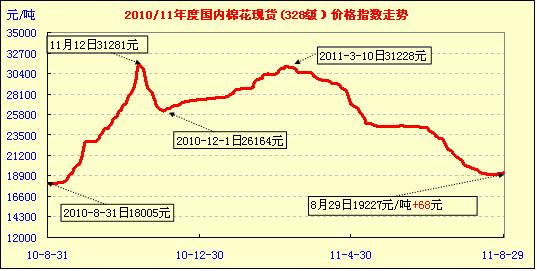 中國(guó)棉花價(jià)格指數(shù)行情(11-8-29)