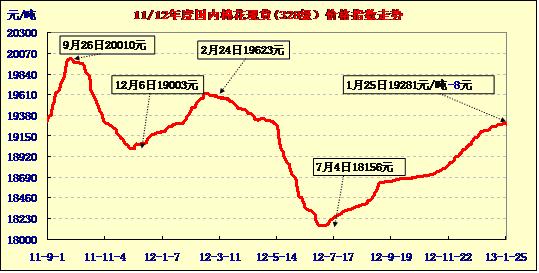 中國(guó)棉花價(jià)格指數(shù)行情(13-1-25)