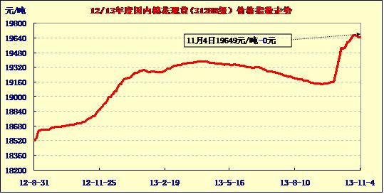 中國(guó)棉花價(jià)格指數(shù)行情(11-04)