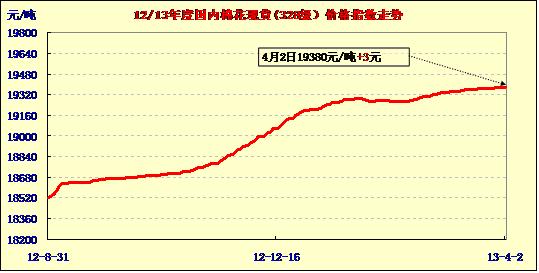 中國(guó)棉花價(jià)格指數(shù)行情(13-4-2)