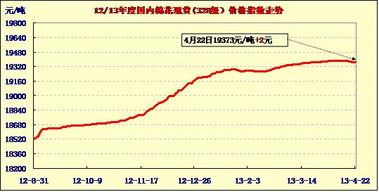 中國(guó)棉花價(jià)格指數(shù)行情(13-4-22)
