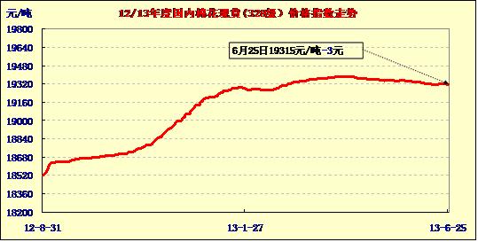 中國(guó)棉花價(jià)格指數(shù)行情(13-6-25)
