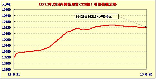 中國(guó)棉花價(jià)格指數(shù)行情(13-6-26)