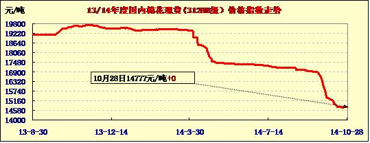 中國(guó)棉花價(jià)格指數(shù)行情(10-28)