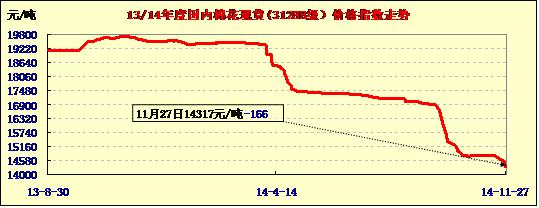 中國(guó)棉花價(jià)格指數(shù)行情(11-27)