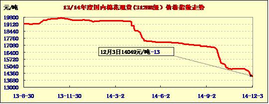中國(guó)棉花價(jià)格指數(shù)行情(12-03)