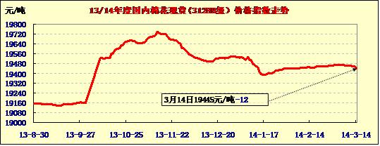中國(guó)棉花價(jià)格指數(shù)行情(03-14)