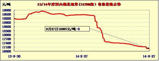中國(guó)棉花價(jià)格指數(shù)行情(08-27)