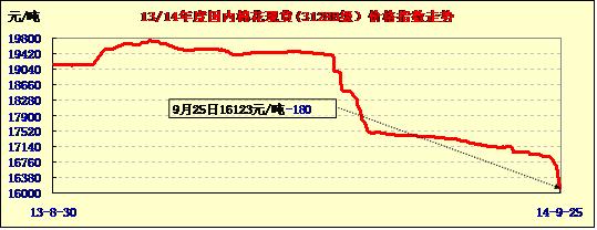 中國(guó)棉花價(jià)格指數(shù)行情——大跌不休(09-25)
