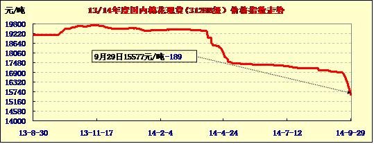 中國棉花價格指數(shù)行情——七連延續(xù)大跌(09-29)