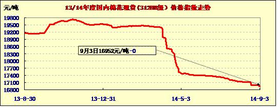 中國(guó)棉花價(jià)格指數(shù)行情(09-03)