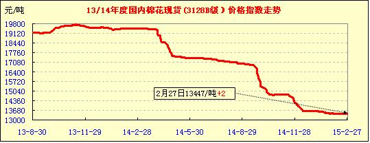 中國(guó)棉花價(jià)格指數(shù)行情(02-27)