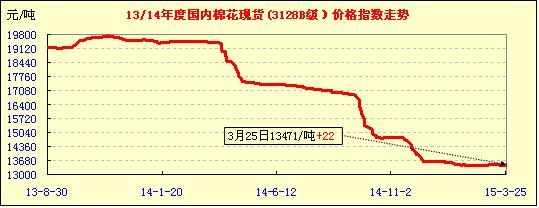 中國(guó)棉花價(jià)格指數(shù)行情(03-25)