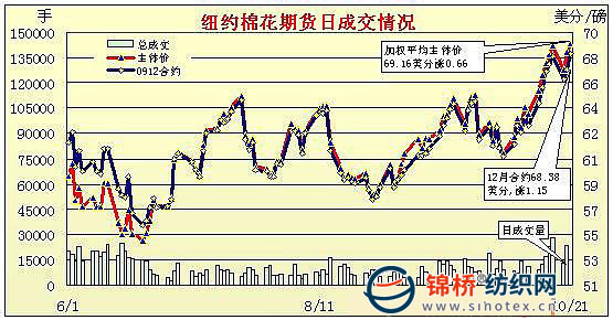 錦橋紡織網(wǎng)—資訊頻道> 棉花信息> 紐棉期貨>正文 紐約期棉一路盤升增倉上揚(yáng)(10-21)