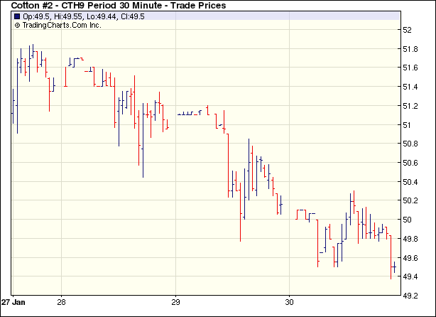 1月30日紐約期棉低開試沖尾市滑落四連陰跌