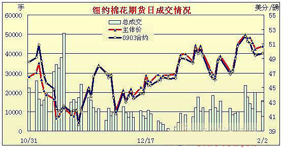 2月2日紐約期棉低開震蕩尾市沖高小幅收漲