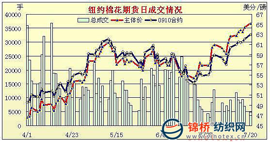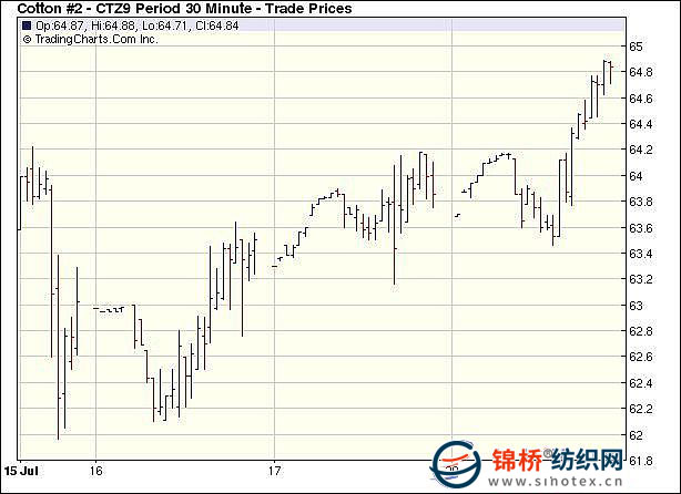 7月20日全球股市走強,美元大幅下跌,推動大宗商品走高,投機買盤拉升期棉價格,突破前期高位并收高,盤終12月合約漲80點收于64.86美分/磅。當(dāng)日紐約期棉小幅低開,早盤呈現(xiàn)弱勢,期棉12月合約下行至63.31美分,之后美元大跌激勵商品市場上揚,投機買盤拉升期棉走高,首先突破64.22美分的關(guān)鍵阻力位,之后觸發(fā)止損買盤,主力合約一路攀升,直接沖到最高64.89美分,高位遭遇輕微的獲利盤打壓,小幅滑落,但依然收在高位,成交不太活躍,期權(quán)交投包括3000份看漲期權(quán)和1300看跌期權(quán)。 紐約棉花期貨主力0912合約近三個交易日交易走勢 更多紡織專業(yè)資訊,關(guān)注錦橋紡織網(wǎng)微信公眾號。微信搜:錦橋紡織網(wǎng) 轉(zhuǎn)載本網(wǎng)專稿請注明:"本文轉(zhuǎn)自錦橋紡織網(wǎng)" |