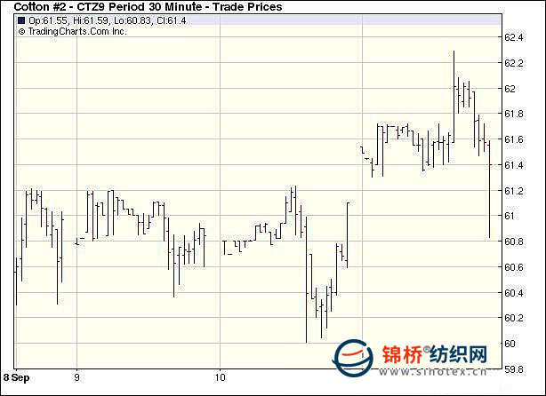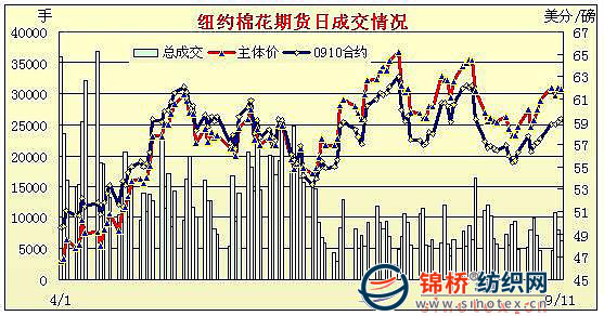 錦橋紡織網(wǎng)—資訊頻道> 棉花信息> 紐棉期貨>正文 紐約期棉高開(kāi)震蕩窄幅收陽(yáng)(9-11)
