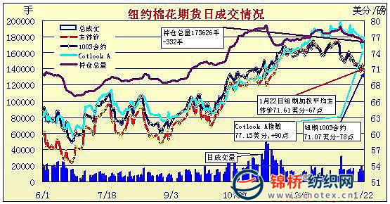 紐約期棉平開低走再度恢復(fù)跌勢(1-22)