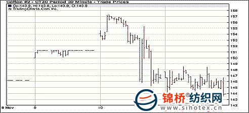 2010年11月11日道瓊斯期貨消息:十二月份合約日內(nèi)在1.4356美元至1.5000之間反彈,收盤價每磅1.4421美元,降1.44美分,跌幅近1%。棉花分析師邁克·斯蒂文稱,交易者賣出十二月份合約買進價格較低的三月份合約,所以這次變動主要是三月份合約與十二月份合約價格差異造成的。周四三月份合約每磅收盤價1.3918美元,降1.93美分,跌幅1%。 |