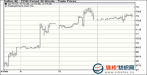 紐約期棉震蕩收陽漲幅收窄(2-10)