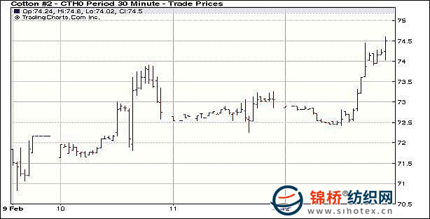 錦橋紡織網(wǎng)—資訊頻道> 棉花信息> 紐棉期貨>正文 紐約期棉午市拉升縮量收漲五連陽(yáng)(2-12)