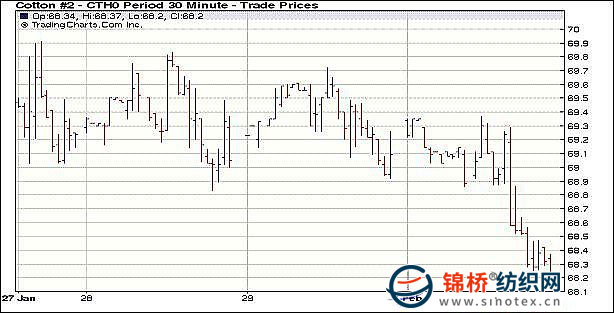 紐約期棉近跌遠(yuǎn)漲首期合約跌破69美分(2-1)