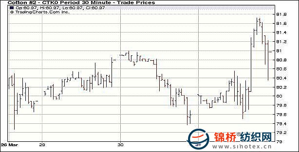 紐約期棉開盤平穩(wěn)尾市大幅拉高(3-31)