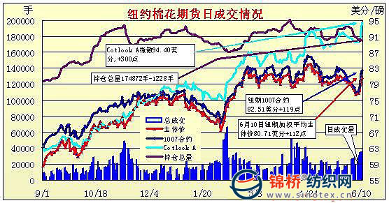 錦橋紡織網(wǎng)—資訊頻道> 棉花信息> 紐棉期貨>正文 紐約期棉高開收漲百余點三連牛市推新高(6-10)