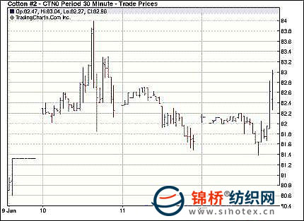 錦橋紡織網(wǎng)—資訊頻道> 棉花信息> 紐棉期貨>正文 紐約期棉尾盤拉高縮量收漲(6-14)