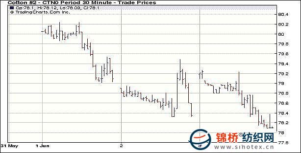 紐約期棉賣盤打壓近跌遠(yuǎn)漲(6-3)