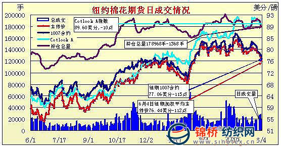 錦橋紡織網(wǎng)—資訊頻道> 棉花信息> 紐棉期貨>正文 紐約期棉一路下滑跌百余點(diǎn)八連陰(6-4)