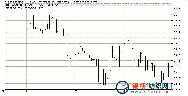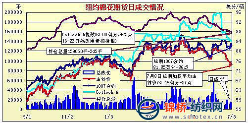 錦橋紡織網(wǎng)—資訊頻道> 棉花信息> 紐棉期貨>正文 紐約期棉小幅高開震蕩下滑均線陰收(7-8)