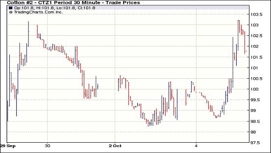 有關(guān)歐盟財(cái)長正在討論歐洲銀行業(yè)資本重組方式的報(bào)道推動(dòng),美國股市在最后一個(gè)交易小時(shí)強(qiáng)力反彈,全線收漲,道瓊斯指數(shù)上漲1.44%;標(biāo)準(zhǔn)普爾漲2.25%;那斯達(dá)克指數(shù)漲2.95%。在股市及外圍市場影響下,紐約期棉午市大舉反抽。各合約主體價(jià)收于100.89美分/磅,漲225點(diǎn)。主力12月合約收于101.87美分,漲266點(diǎn)。