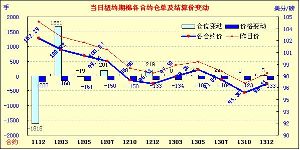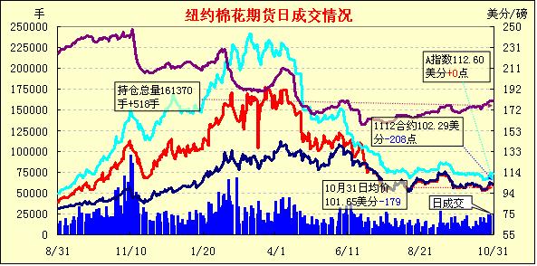 因歐債危機的解決方案引發(fā)市場擔(dān)憂,31日ICE期棉全面大幅下跌,主力1112月合約結(jié)算價102.29美分/磅,跌208點,1203月合約結(jié)算價100.82美分/磅,跌168點;其他遠(yuǎn)期合約也大幅收跌。當(dāng)日市場早盤高開低走,因歐債危機擔(dān)憂重燃及外部商品、原油市場大幅走低,期棉受連累下跌,主力1112月合約當(dāng)日最低至101.14美分/磅;尾盤時買盤介入,但市場反彈幅度有限,盤終各合約均大幅告跌。有報道稱,希臘政府將就新出爐的救助方案進(jìn)行全民公投,也將對政府進(jìn)行信任投票。這給投資者帶來又一個打擊,也加重了債務(wù)國以及歐元區(qū)擺脫債務(wù)危機能力的不確定性,歐元兌美元昨日出現(xiàn)一年多以來的最大單日百分比跌幅。