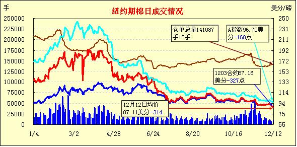 紐約期棉仍是歐債危機期棉下挫全線跌破90美分(12-12)