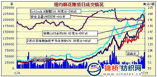 紐約期棉逆市向上整理縮量收漲(2-15)