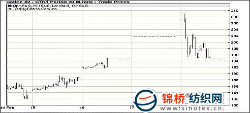 紐約期棉開盤漲停后下挫新年來首個全線跌停(2-18)