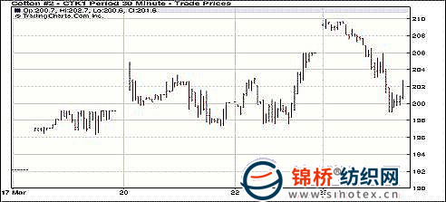 交易者們稱,棉價(jià)推高企圖突破2.10美元,基于五月份合約,但這個(gè)企圖逐漸消失了。