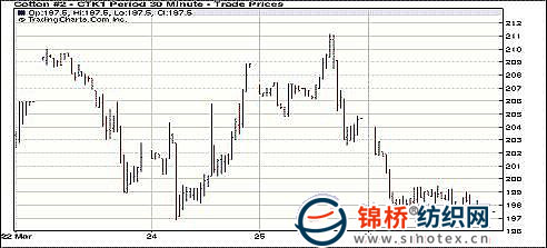 至3月25日181017手,為2月17日以來最多,投資商買興達(dá)到六個(gè)星期最高水平。不過,一些交易商相信,由于在全球跟隨上漲而種植棉花前一些投資商期待期棉在數(shù)周內(nèi)下跌,造成建立的大部分棉花頭寸為空頭。