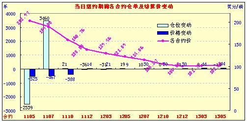 紐約期棉近期1105合約近三個(gè)交易日交易走勢(shì)