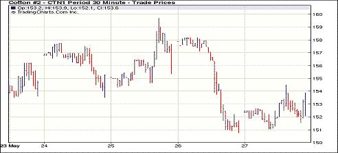 5月27日紐約期棉市場在假期前一個交易日多數(shù)合約多數(shù)合約反彈收漲,近期7月合約結(jié)算價152.67美分/磅,漲164點,1112月合約129.5美分/磅,漲193點。因美國陣亡將士追悼日,5月30日期棉市場將休市一天;假期前市場成交清淡。市場弱勢開盤后震蕩走高,盤中多數(shù)時候7月合約維持在152美分以上水平,12月合約則停留于128美分以上,交易后期7/12月合約轉(zhuǎn)倉交易打壓7月合約,7月合約有所回落,12月合約繼續(xù)走高,交易后期因空頭平倉及美元下跌促進商品市場整體上揚,促進7月合約低點反彈,最終市場以多數(shù)合約上漲收盤。5月30日為美國陣亡將士追悼日假期,英國為春季銀行假日。