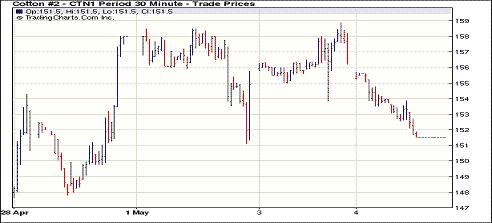 5月4日紐約期棉全面下跌,經(jīng)濟(jì)層面出現(xiàn)不利消息,整個(gè)商品市場(chǎng)承壓,主力7月合約跌停,收于151.51美分/磅,1112月合約125.59美分,跌278點(diǎn)。當(dāng)日市場(chǎng)早盤(pán)短暫穩(wěn)定,美國(guó)股市下跌,隨后商品期貨市場(chǎng)下滑,期棉出現(xiàn)明顯跌勢(shì),大半個(gè)交易日7月合約在低點(diǎn)徘徊,最終跌停。因相關(guān)經(jīng)濟(jì)數(shù)據(jù)出臺(tái),投資機(jī)構(gòu)表示美國(guó)經(jīng)濟(jì)增長(zhǎng)率預(yù)期可能達(dá)不到4%,加上部分國(guó)家將仍采取更多措施來(lái)遏制通貨膨脹,商品市場(chǎng)承受一定壓力。