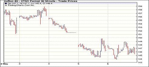 紐約期棉減倉放量震蕩整理漲跌互現(xiàn)(5-6)