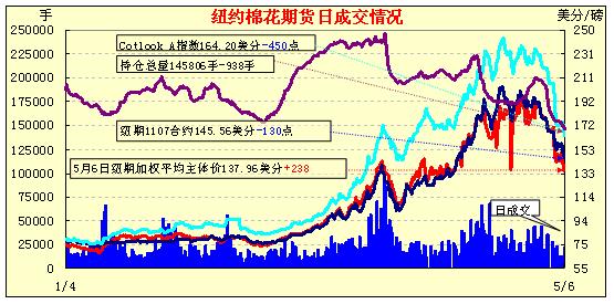 截至5月5日,期棉未平倉量減至148291手,是自2009年10月以來最低水平,上次的數(shù)據(jù)是149172手。