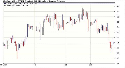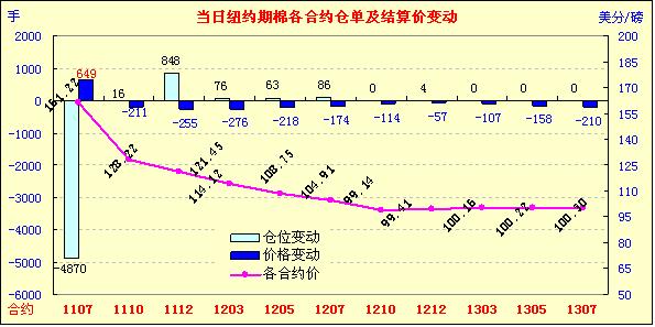 6月22日紐約期棉因基本面利好,主力合約受賣盤打壓下行,近期合約受到支撐漲幅超600點(diǎn)。當(dāng)日主力12月合約早盤走強(qiáng),有消息指出美國(guó)西南棉區(qū)德州、中南棉區(qū)三角洲以及東南棉區(qū)的部分地區(qū)有利好降雨,苗情有所好轉(zhuǎn)。此外外圍谷物等商品期貨走弱,對(duì)棉市形成壓力。因此主力合約遭到賣盤打壓,價(jià)格回落,盤中最低點(diǎn)至119.22美分/磅,尾盤有所反彈,最終收于121.45美分/磅,跌255點(diǎn)。近期7月合約收于161.22美分/磅,漲649點(diǎn)。目前7月與12月合約價(jià)差達(dá)到3977點(diǎn)。
