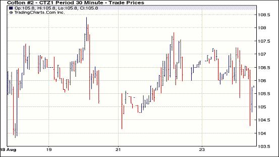 8月23日,紐約期棉交投清淡,投資者普遍持觀望態(tài)度,棉市缺乏支撐,主力合于收跌百余點(diǎn)。當(dāng)日市場(chǎng)開盤后,保持區(qū)間震蕩,外圍商品市場(chǎng)及股市早盤普遍走強(qiáng),為棉市帶來一定支撐,雖主力1112月合約兩次上揚(yáng)至107美分/磅以上,但因缺乏上漲動(dòng)能,很快回落,當(dāng)日最高點(diǎn)為107.25美分/磅。尾盤時(shí)期棉受到賣盤的打壓,收于低點(diǎn)。近期1110月合約收于105.14美分/磅,跌147點(diǎn);1112月合約收于105.24美分/磅,跌121點(diǎn)。其它遠(yuǎn)期合約跌幅在67-172點(diǎn)不等。